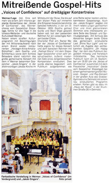 Presseberichte 2013 - Konzertreise nach Weimar - Bericht 2