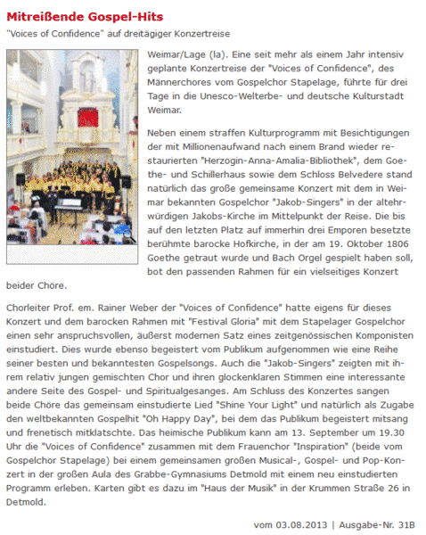 Presseberichte 2013 - Konzertreise nach Weimar